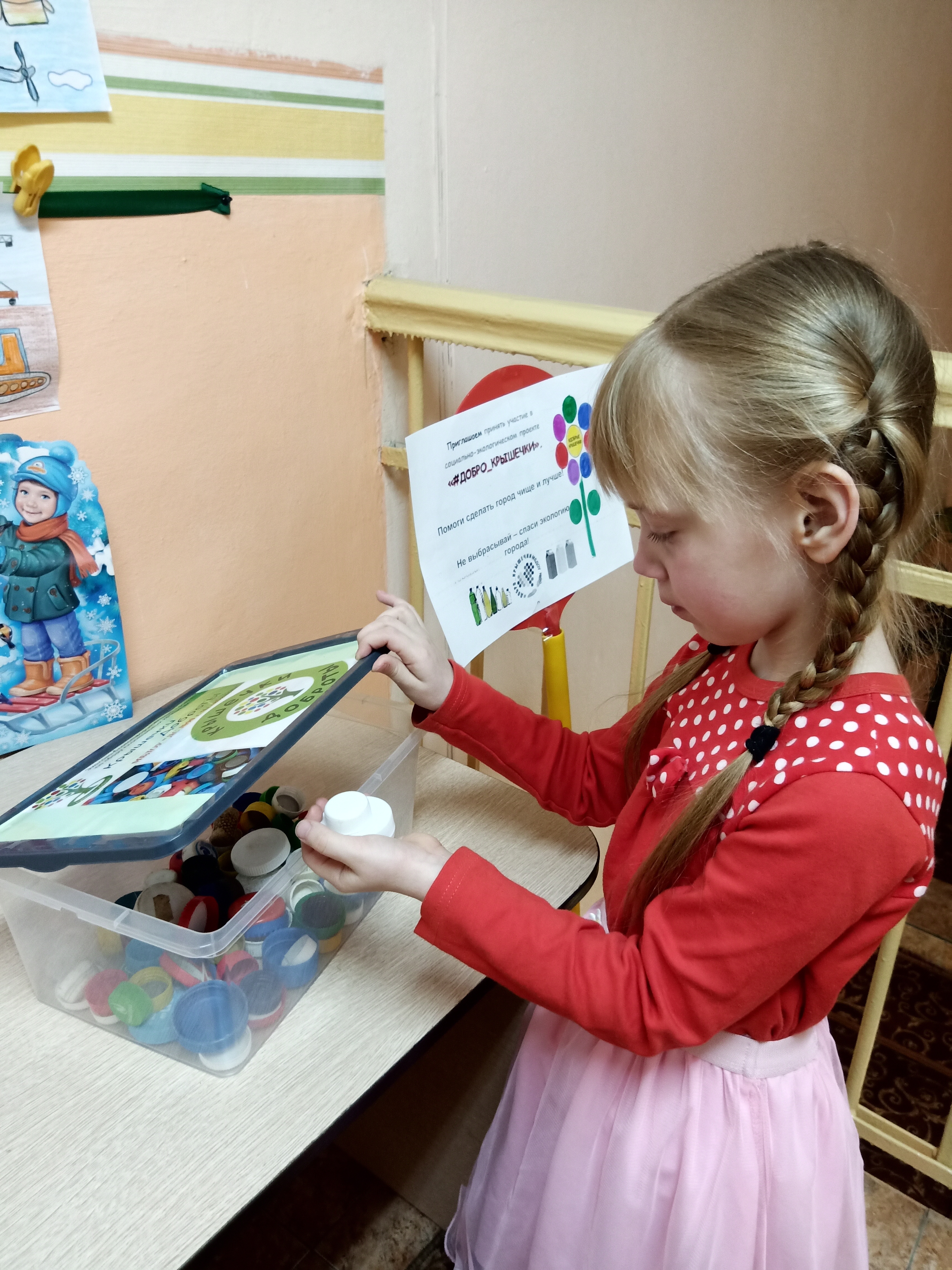 В нашем детском саду систематически проводятся акции: «Сдай макулатуру – спаси дерево», «Сдай батарейку – сохрани природу», «Сортируй отходы – сохраняй природу». К счастью всё больше людей начинают вести экологически осознанный образ жизни, собирают мусор раздельно и сдают его... "Добрые крышечки" – это российский эколого-благотворительный волонтерский проект, имеющий двойную цель: сделать мир чище и помочь детям, которым нужна помощь. Задачи проекта: просвещение детей и родителей о пользе раздельного сбора мусора, формирование и развитие навыков селективного сбора мусора, оказание помощи детям с особенностями развития. Дети, родители и воспитатели детского сада приняли участие в акции, собирая крышечки, заботясь об экологии нашего города!