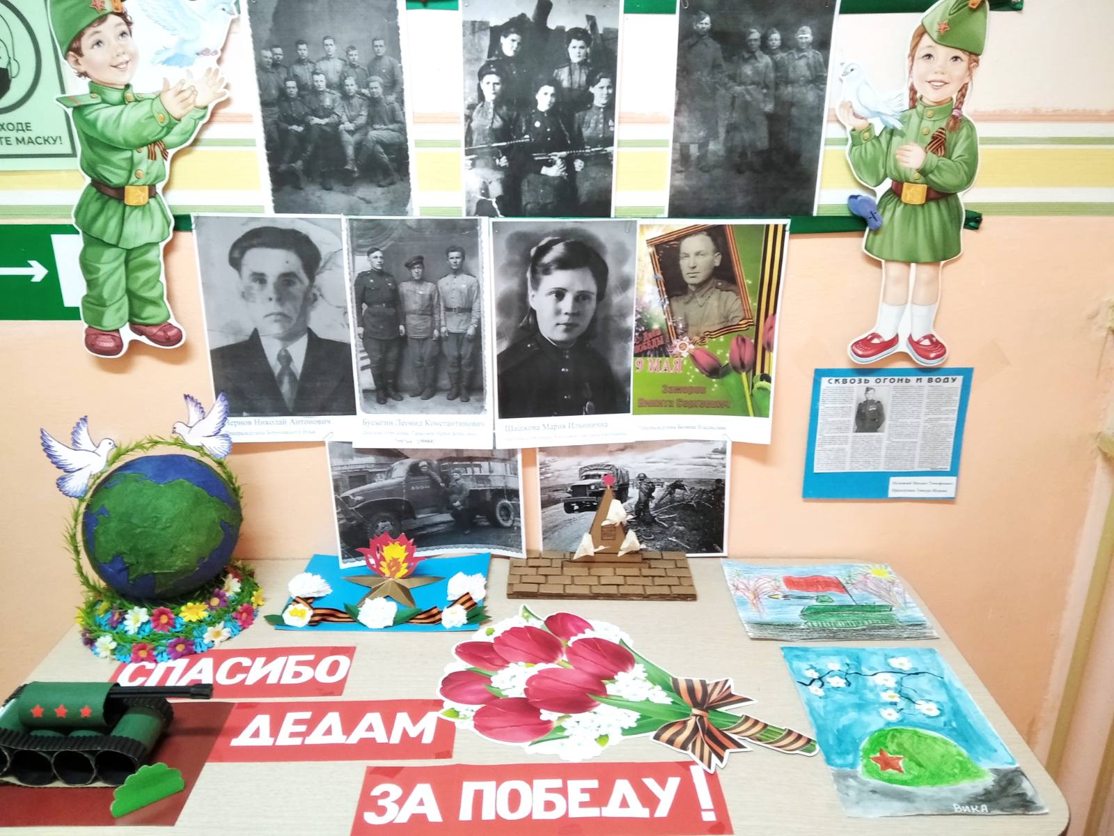 В преддверии праздника в детском саду был реализован краткосрочный проект «День Победы – главный праздник страны». В процессе реализации проекта, воспитатели провели тематические занятия о ВОВ, ознакомили детей с военными наградами, профессиями, техникой. Дети, совместно с педагогами, оформили «Стену славы», где поместили портреты воевавших родственников наших воспитанников и сотрудников, праздничный плакат, рисунки, изготовили голубей мира»