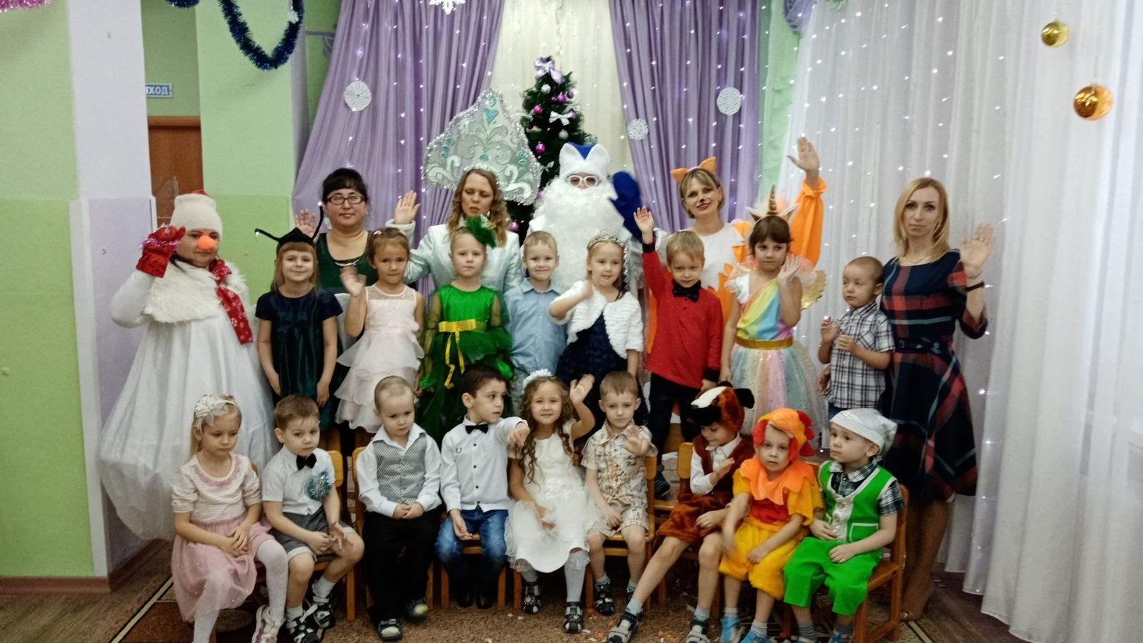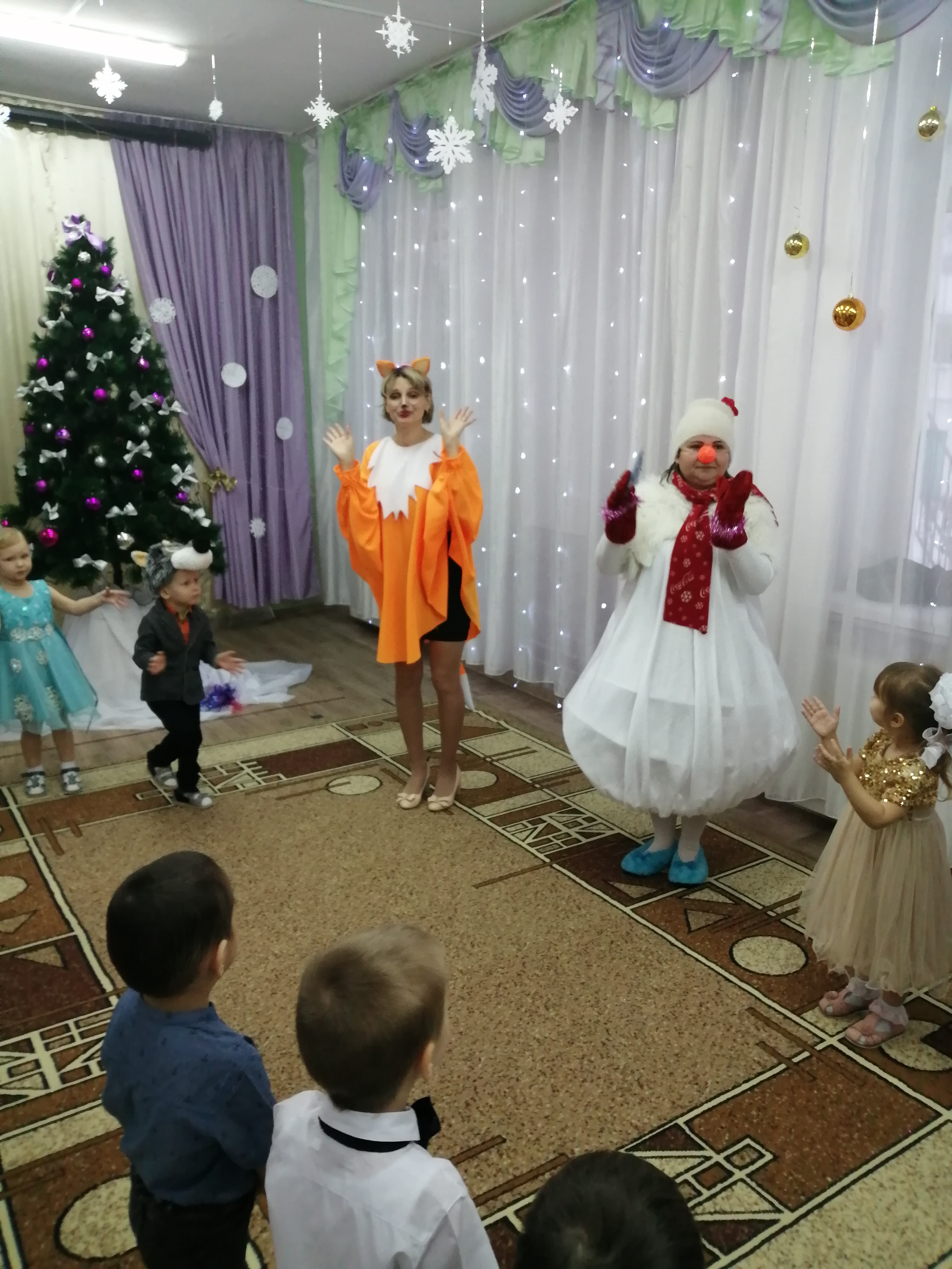 Новый год - для детей это праздник, которого они всегда с нетерпением ждут. Каждый ребёнок верит в чудеса и в исполнение желаний. Так, на праздниках младшего дошкольного возраста, ребята вместе с Дедушкой морозом, Снегурочкой, Мишкой и Лисой помогали Снеговику найти его метлу, которую он потерял в лесу. Были и песни и пляски и игры и конечно же подарки.