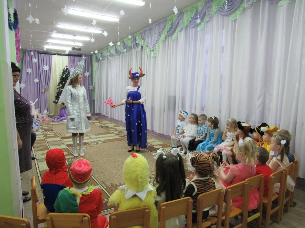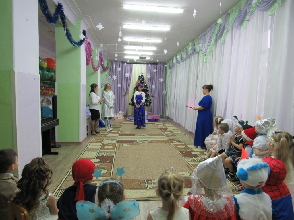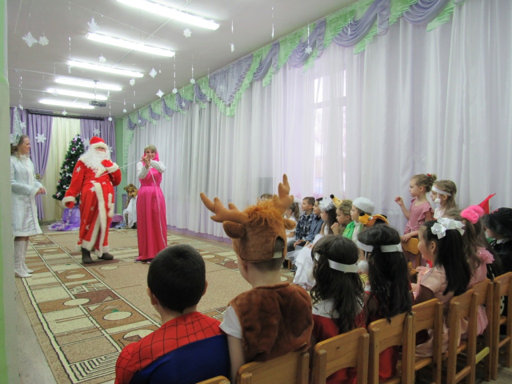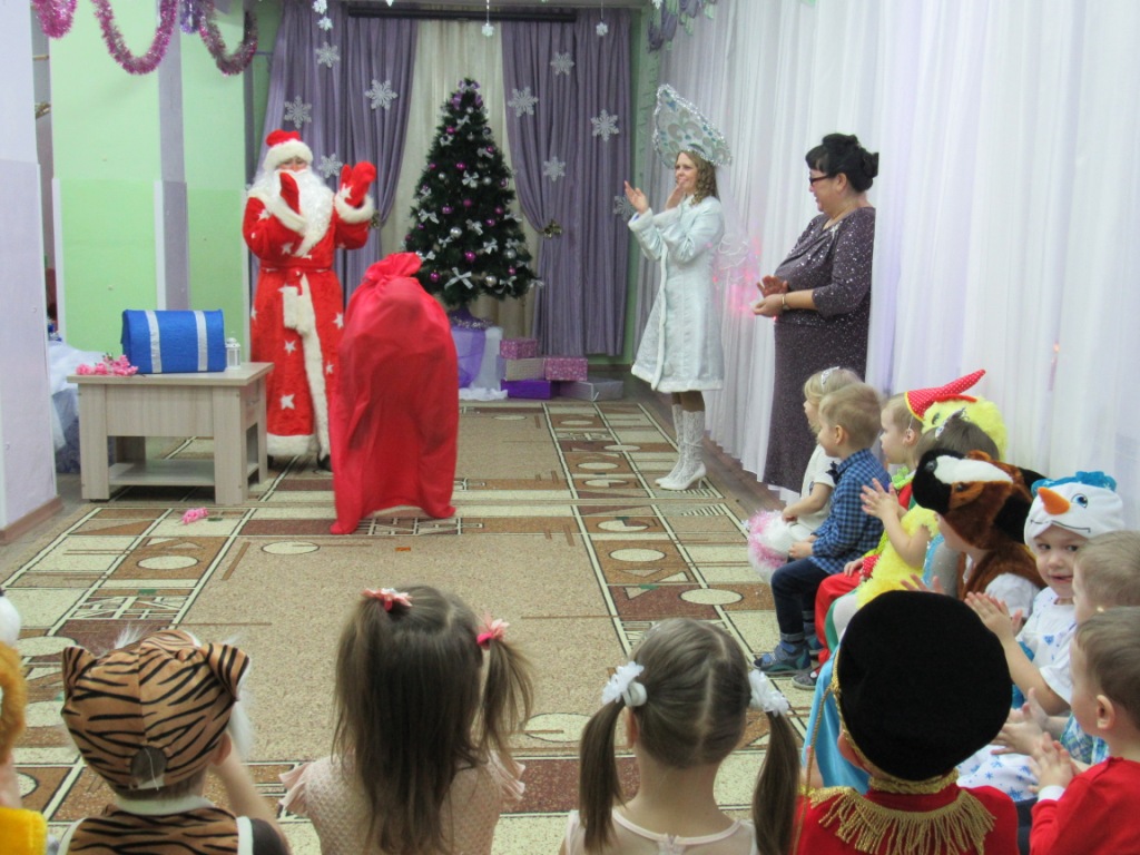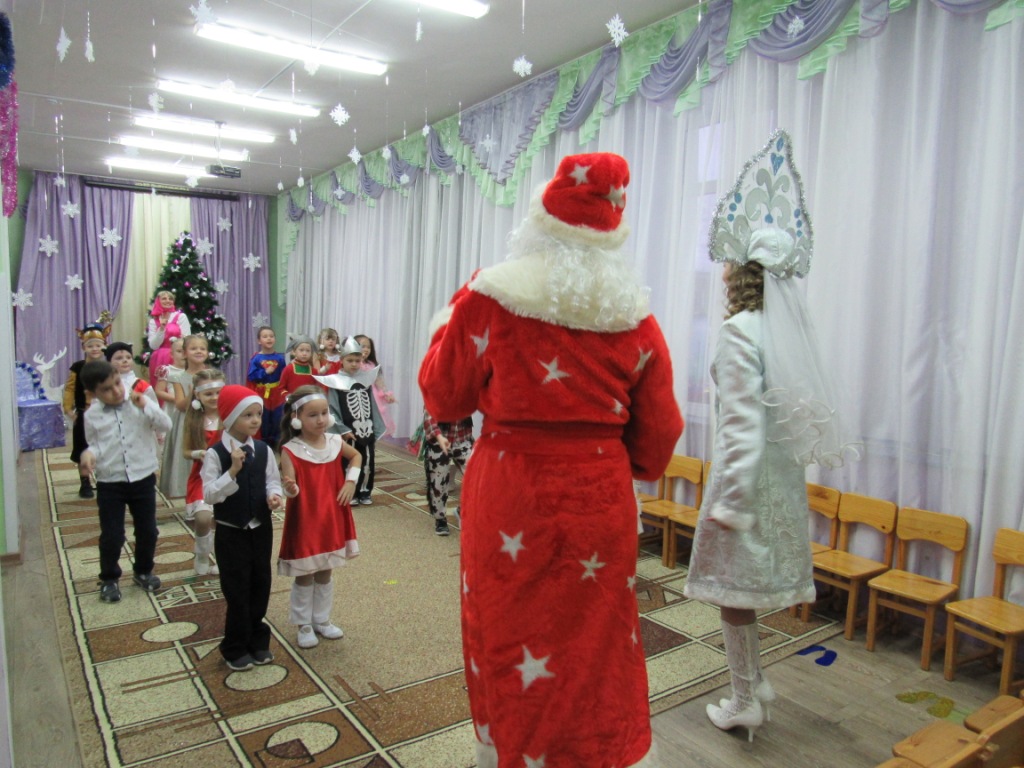 Этот праздник любит каждый, Вот и наступила в детском саду долгожданная пора Новогодних праздников! Красиво украшенный зал, нарядная елка, подарки, Дед Мороз и Снегурочка, Бурёнка, Машенька и Медведь ожидали воспитанников детского сада. Ребята погрузились в мир чудес, приключений, невероятных превращений и сюрпризов. Дошколята танцевали, пели песни, читали стихотворения, водили хороводы, с удовольствием участвовали в играх и конкурсах. Дети получили массу положительных эмоций и долгожданные подарки из рук Деда Мороза. Группа «Ягодки» Группа «Колокольчики» | |