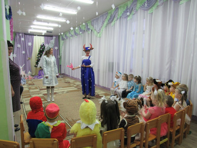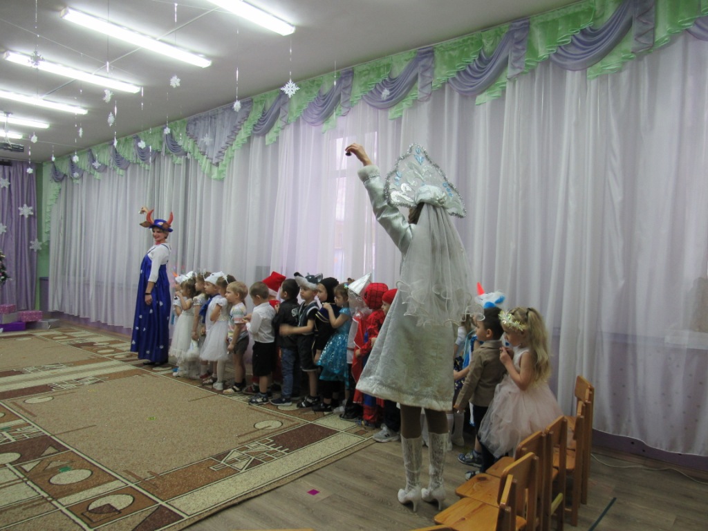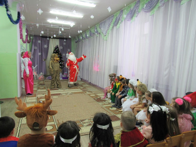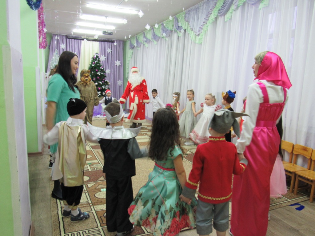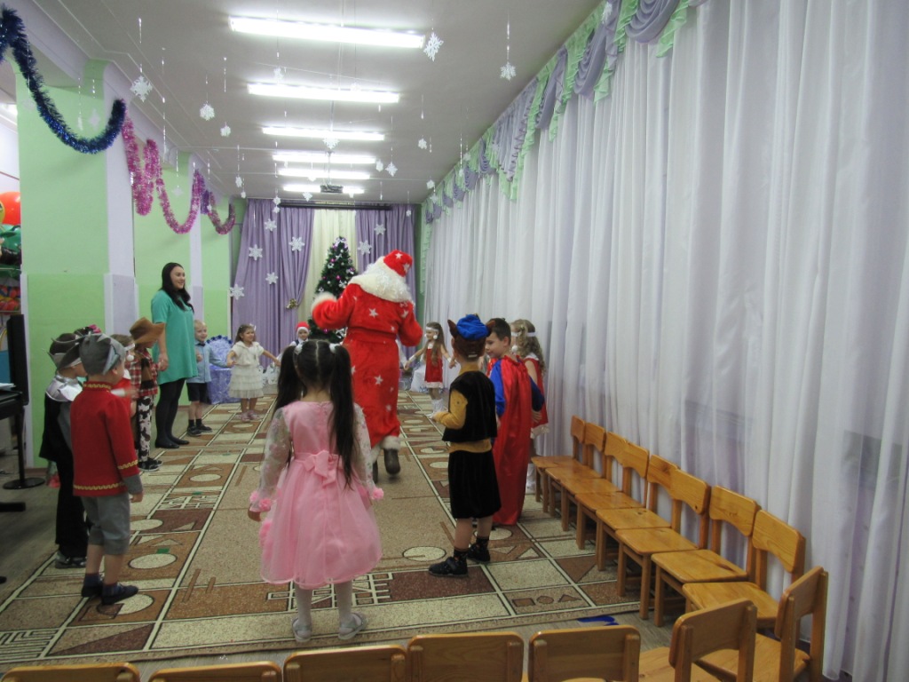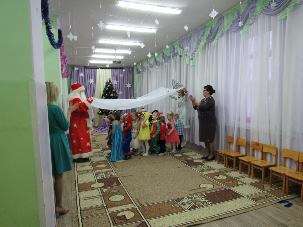 Этот праздник любит каждый, Вот и наступила в детском саду долгожданная пора Новогодних праздников! Красиво украшенный зал, нарядная елка, подарки, Дед Мороз и Снегурочка, Бурёнка, Машенька и Медведь ожидали воспитанников детского сада. Ребята погрузились в мир чудес, приключений, невероятных превращений и сюрпризов. Дошколята танцевали, пели песни, читали стихотворения, водили хороводы, с удовольствием участвовали в играх и конкурсах. Дети получили массу положительных эмоций и долгожданные подарки из рук Деда Мороза. Группа «Ягодки» Группа «Колокольчики» | |