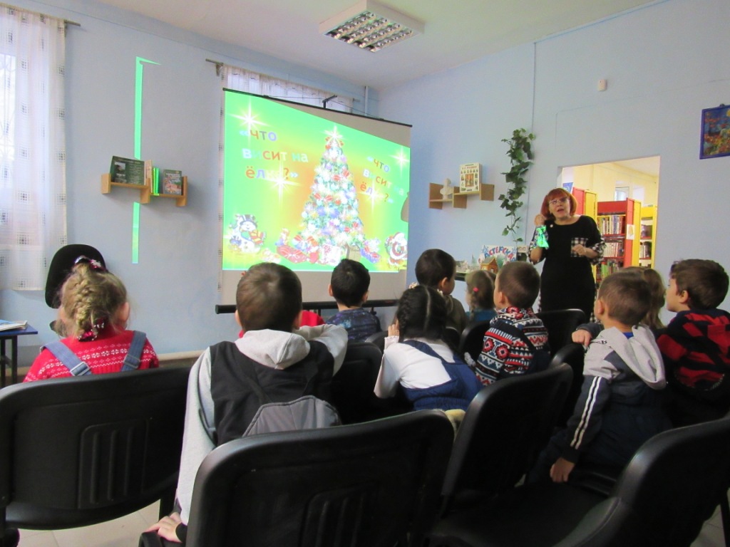 Детская библиотека № 4 пригласила воспитанников старшей группы «Пчелки» на игровую программу «Новогодние смешарики». Библиотекарь Марина Аркадьевна познакомила ребят со сказочной историей возникновения Деда Мороза и Снегурочки и провела веселую Новогоднюю викторину. | |